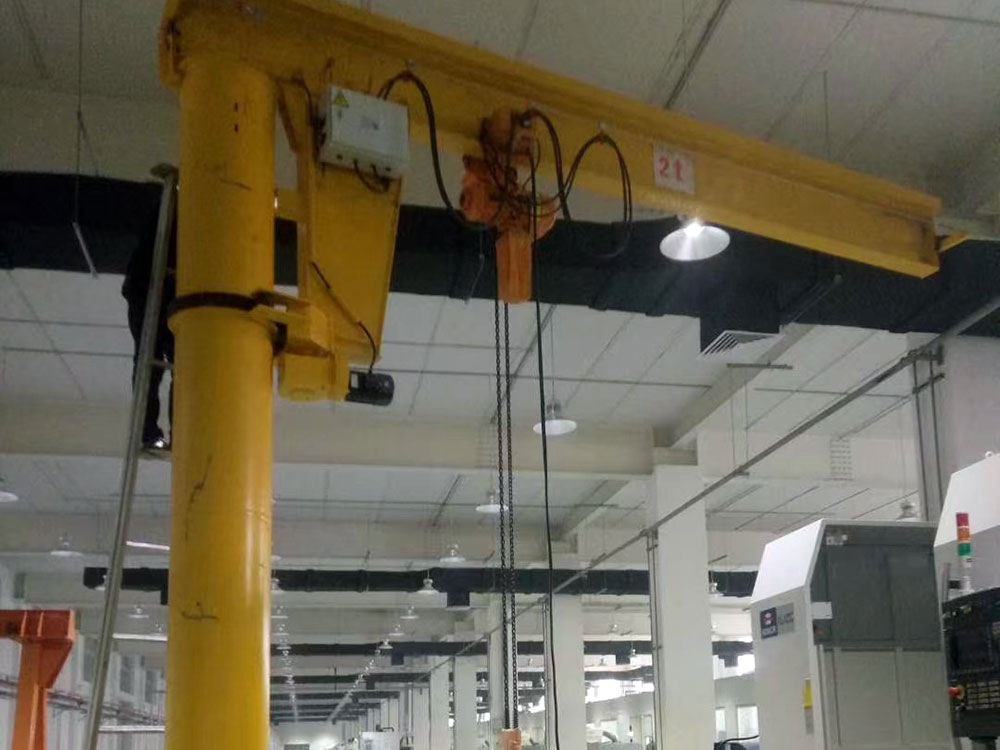 移动式悬臂吊更具灵活机动、适应性广等特点,是自动生产线上必备的单独应急吊装设备,有了它能确保生产线畅通无阻。